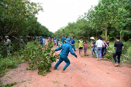 Ngay sau lễ ra quân, cán bộ chiến sĩ C61 và các đơn vị LLVT huyện cùng nhân dân xã Tiên Thuận tổ chức phát quang cây cối, nâng cấp, làm mới tuyến đường dài hơn 400m ở ấp Bàu Tràm Lớn, giúp người dân đi lại thuận lợi, dễ dàng hơn.