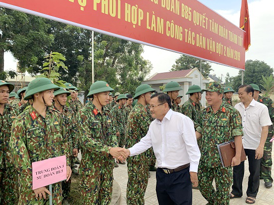 Cán bộ, chiến sĩ các đơn vi cùng cán bộ, nhân dân xã Tân Bình ra quân làm công tác dân vận đợt II.2019.