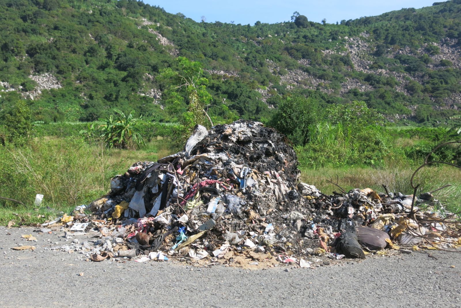 Phần lớn rác thải là vải vụn và vỏ chai chứa trong bao rác bỏ ngay bên đường. Dọc theo đường này hiện rất ít người dân sinh sống, chủ yếu chỉ có những người đến làm rẫy vào ban ngày. Lợi dụng sự vắng vẻ nơi đây, những người kém ý thức đã mang rác đến vứt bỏ.