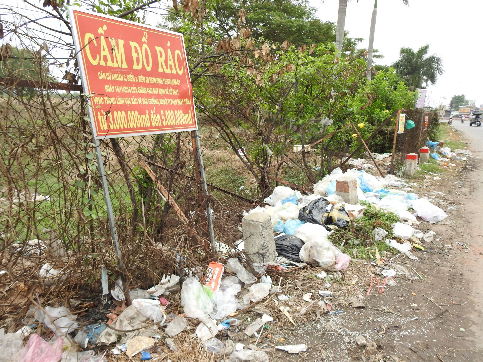 Theo quan sát vào trưa ngày 12.4.2023, có nhiều loại rác thải bốc nặng mùi hôi bị vứt bừa bãi cặp bên đường ĐT.782, mặc dù tại đó có đặt bảng cấm đổ rác. Điều đáng nói là rác còn bị vứt qua khỏi hàng rào cặp bên lề đường, gây khó khăn cho đơn vị thu gom.