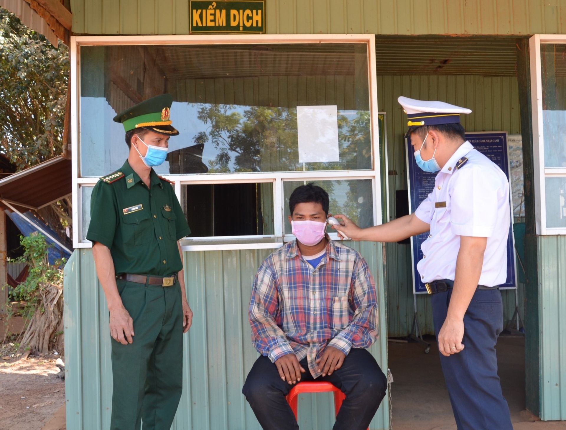 Kiểm tra thân nhiệt tại cửa khẩu Kà Tum (huyện Tân Châu).