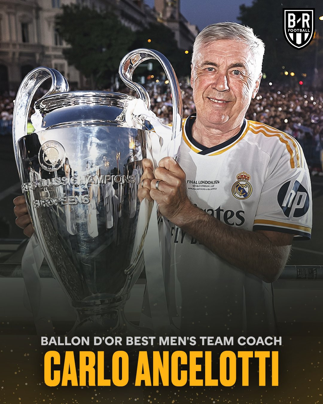 Cũng trong lễ gala, HLV kỳ cựu Carlo Ancelotti được vinh danh là HLV xuất sắc nhất (Johan Cruyff Trophy), khi đưa Real Madrid lên đỉnh vinh quang Champions League.