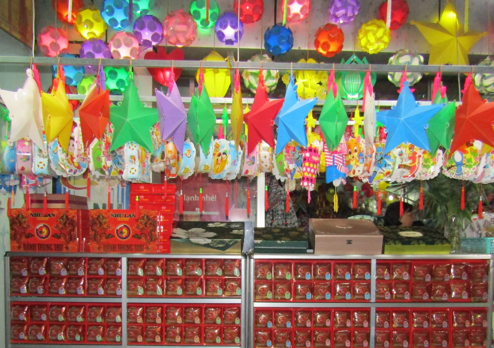Sản phẩm đa dạng là thế, nhưng tình hình kinh doanh của các cửa hàng bánh trung thu trong thời điểm hiện tại còn khá chậm. Ngoài mặt hàng bánh trung thu, các cửa hàng bắt đầu bán đèn lồng cho trẻ em với nhiều mẫu mã và chất liệu khác nhau: lồng đèn truyền thống, lồng đèn sáng tạo, lồng đèn điện tử... Nhìn chung, các sản phẩm lồng đèn Việt ngày càng được phổ biến và ưa chuộng hơn so với lồng đèn có xuất xứ Trung Quốc. Giá trung bình từ 30 đến 50.000 đồng/chiếc.