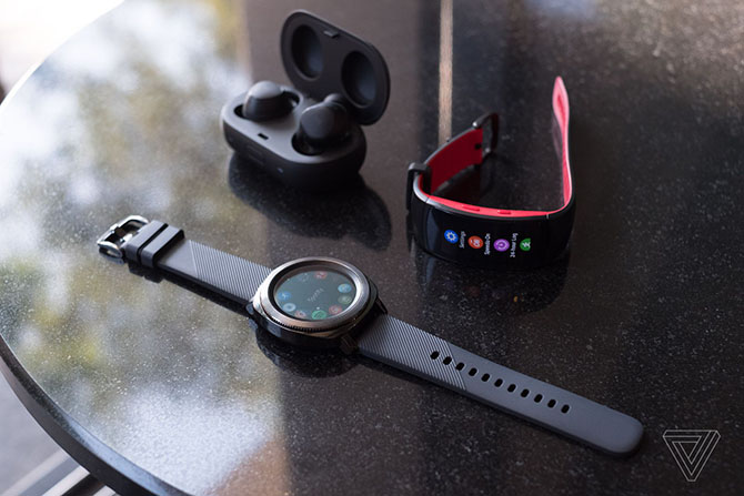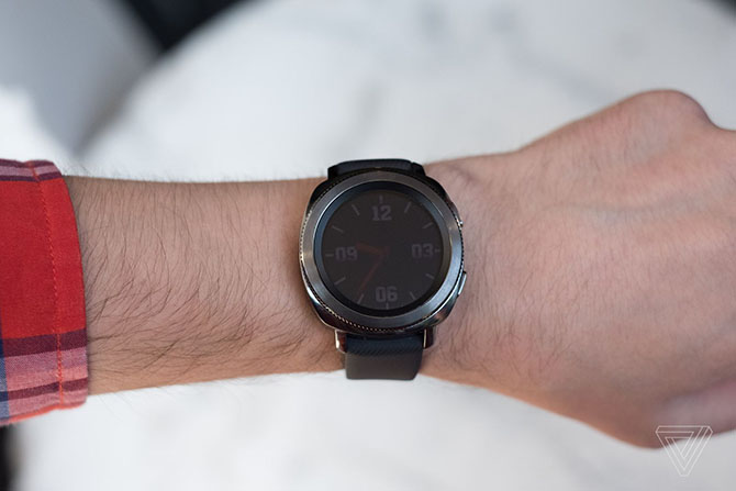 Thiết kế của Gear Sport vẫn khiến chúng ta cảm thấy cuốn hút, với viền đồng hồ có thể xoay được rất ấn tượng, dây đeo silicone vừa vặn dễ đeo, và màn hình AMOLED đủ dùng dưới ánh sáng mặt trời; dù rằng nó rõ ràng là đi ngược lại với xu hướng hiện đại ngày nay khi quá to và có phần hơi "tù".