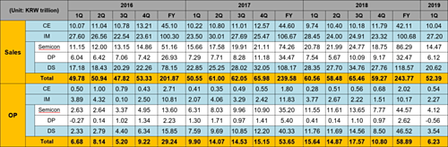 Theo báo cáo tài chính quý I/2019, lợi nhuận của Samsung đã giảm 60%, còn 6,2 nghìn tỷ won (khoảng 5,4 tỷ USD). Nguyên nhân được chỉ ra do giá chip giảm và nhu cầu về tấm nền màn hình tăng chậm.
