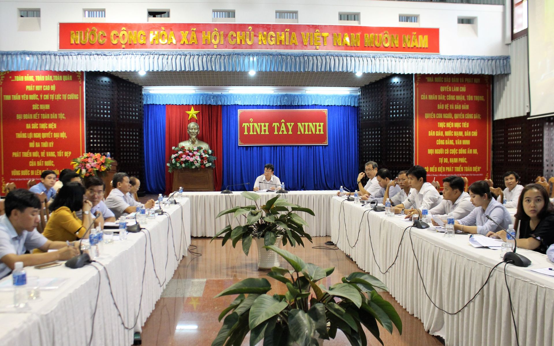 Tây Ninh có 10 điểm cầu kết nối với Trung ương, bao gồm 1 điểm cầu tỉnh và 9 điểm cầu huyện/thành phố. Ông Nguyễn Đình Bửu Quang- Cục trưởng Cục Thống kê, Phó trưởng Ban Chỉ đạo thường trực Tổng điều tra dân số và nhà ở năm 2019 tỉnh Tây Ninh chủ trì hội nghị tại điểm cầu tỉnh.