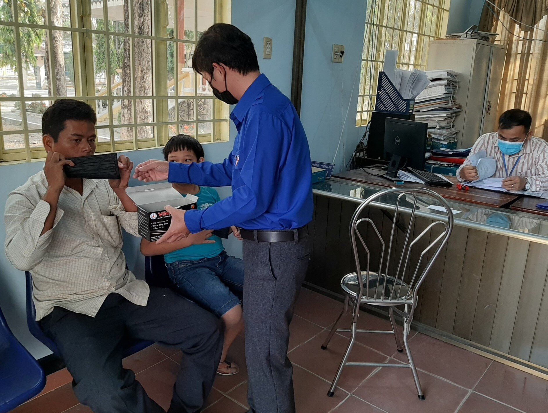 Đoàn viên, thanh niên huyện Trảng Bàng phát khẩu trang cho người dân.