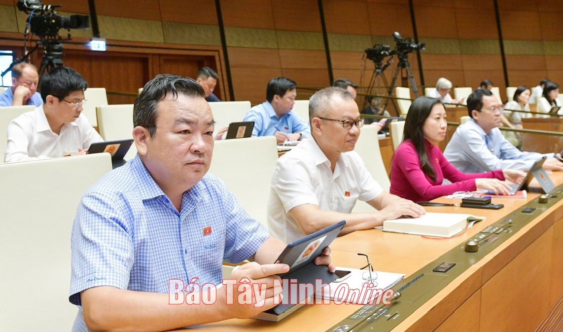 Trưởng đoàn ĐBQH tỉnh Phạm Hùng Thái và các vị đại biểu Quốc hội tỉnh Tây Ninh tham dự kỳ họp
