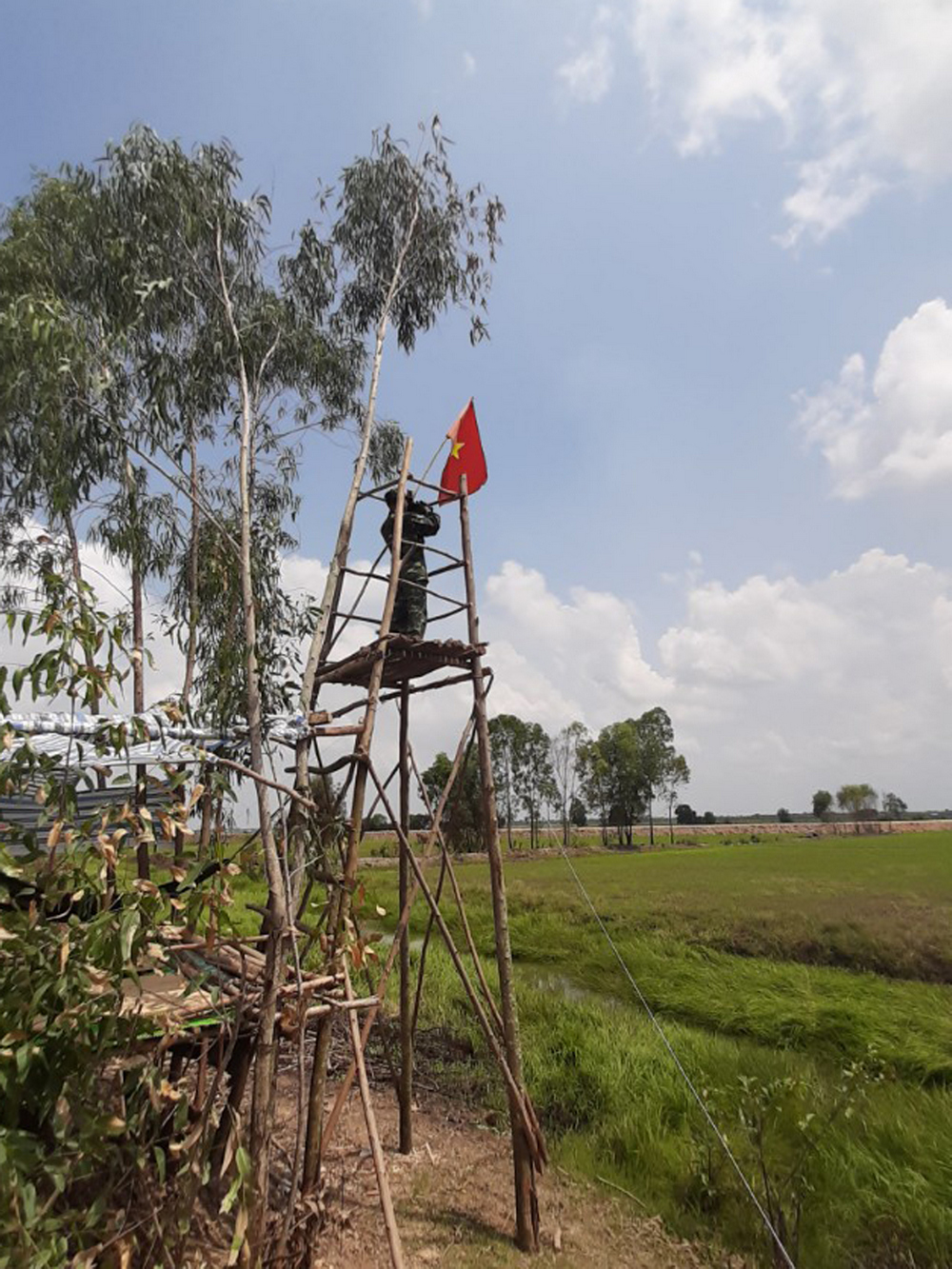 Đài quan sát được làm bằng tràm, tre, tầm vông