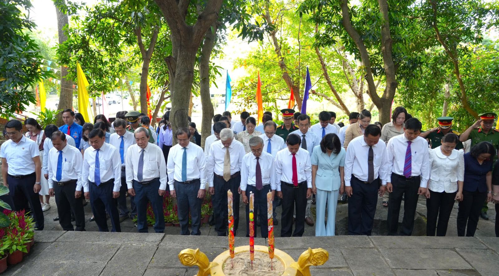 Trong không khí trang nghiêm, dưới chân núi Bà Đen, lãnh đạo tỉnh, thị xã, các nguyên lãnh đạo đã kính cẩn, nghiêng mình thắp hương tưởng niệm những anh hùng đã chiến đấu, hy sinh để làm nên động Kim Quang lịch sử và góp phần vào sự nghiệp giải phóng dân tộc.