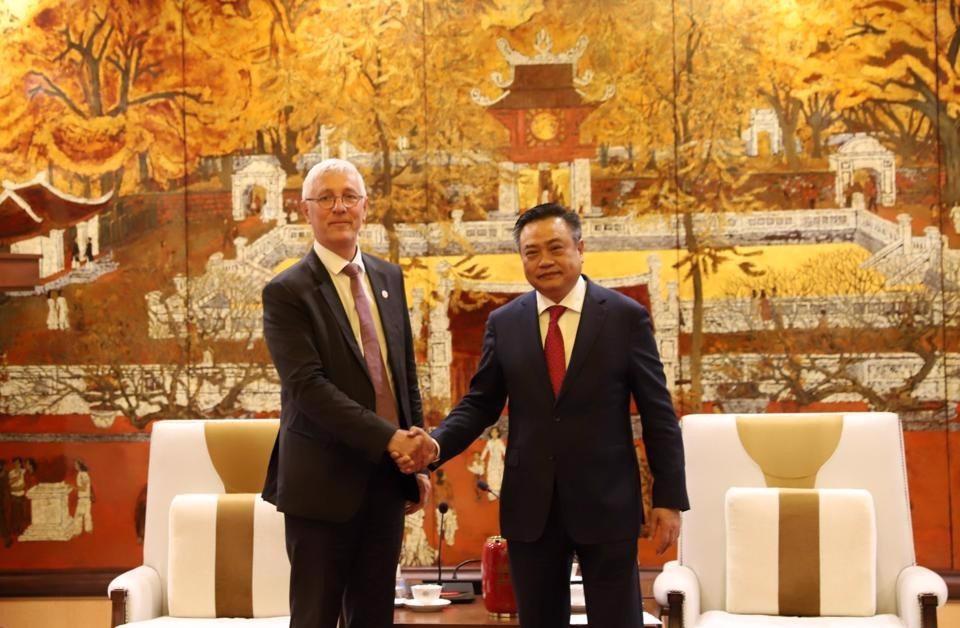 Chủ tịch UBND TP Hà Nội Trần Sỹ Thanh tiếp ông Jean-Claude Dardelet, Phó Thị trưởng thành phố Toulouse. Ảnh: KTĐT