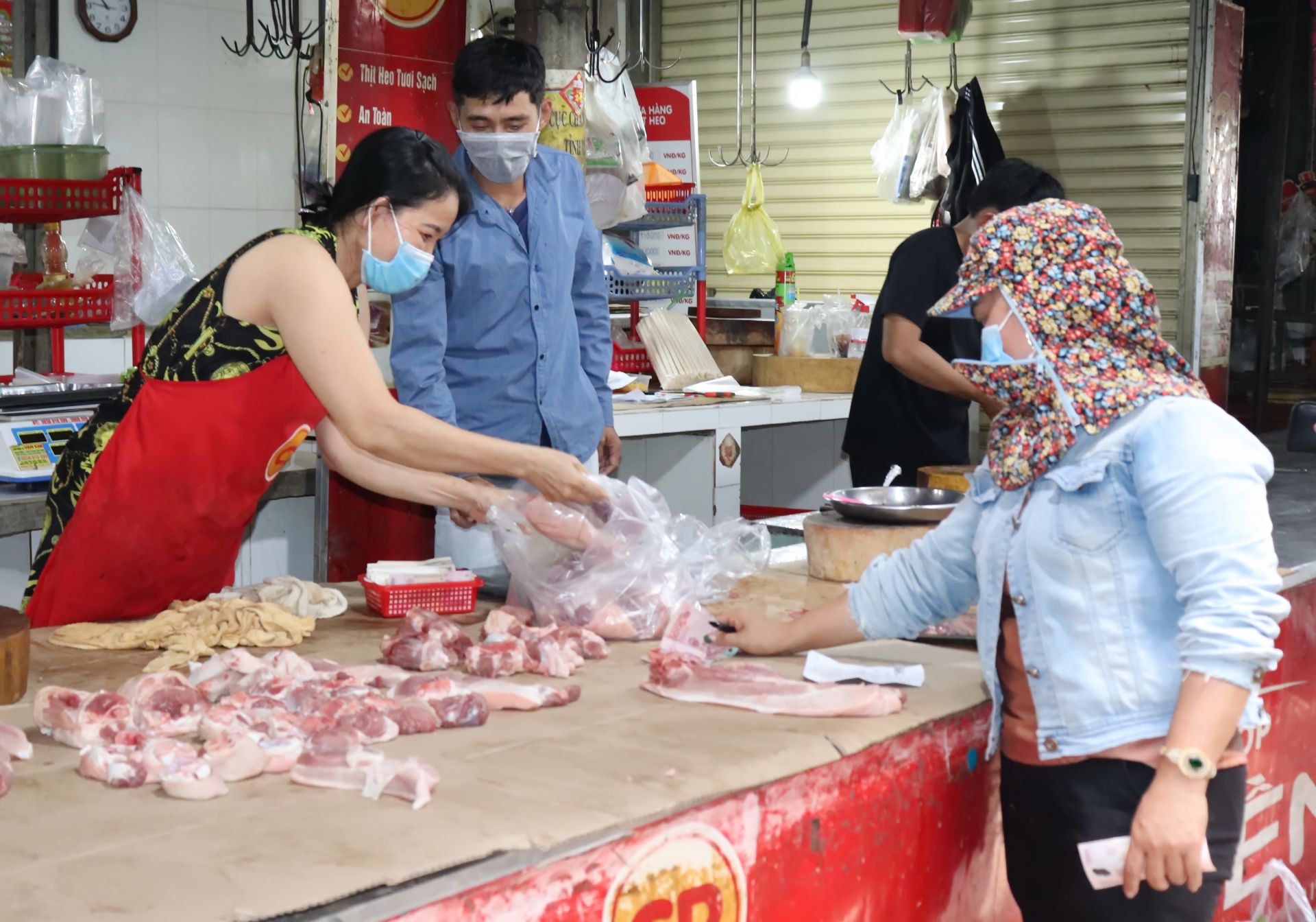 Người tiêu dùng mua thịt heo tại chợ phường 3, TP. Tây Ninh.