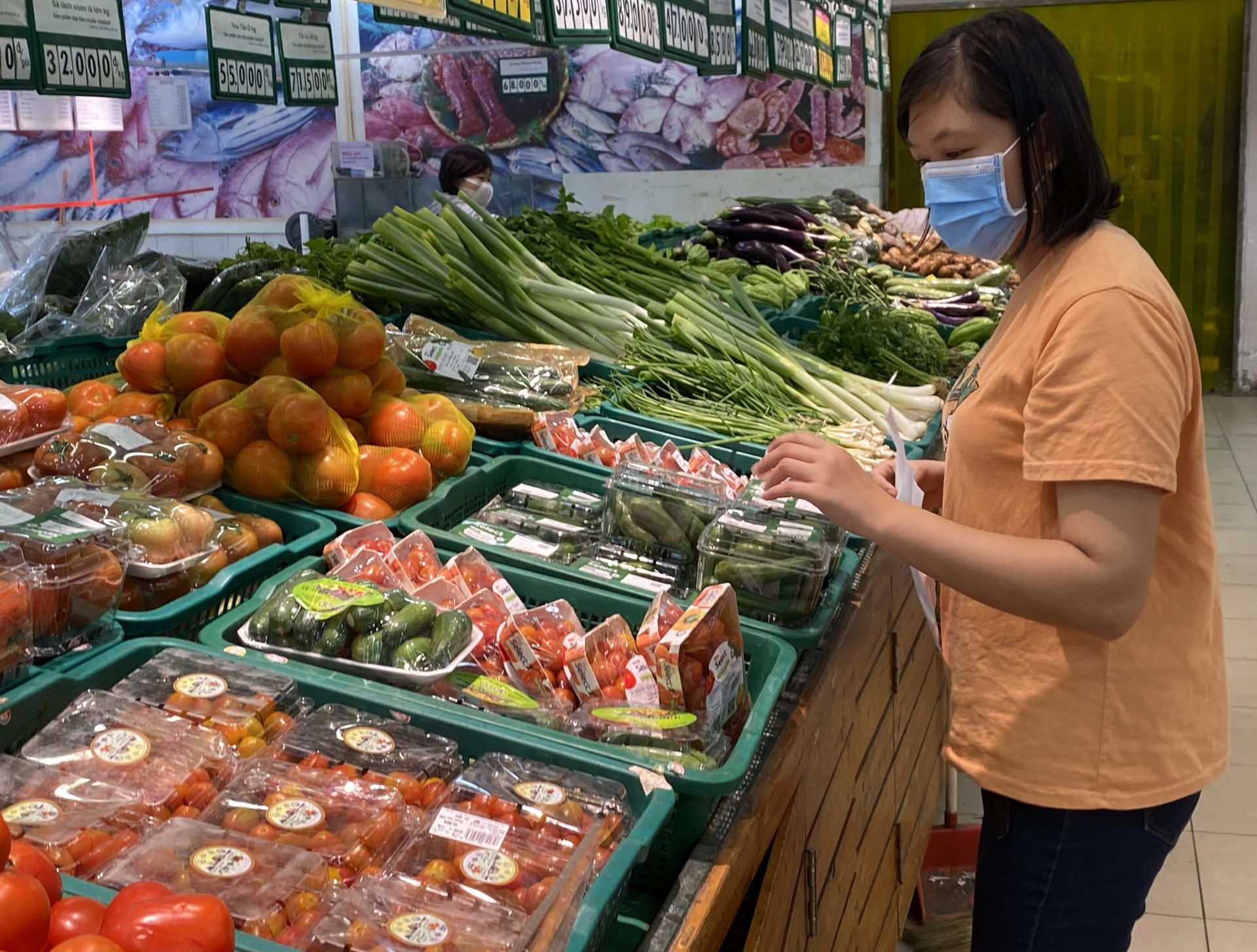 Người tiêu dùng mua rau, củ, quả tại siêu thị Co.opMart TP. Tây Ninh.