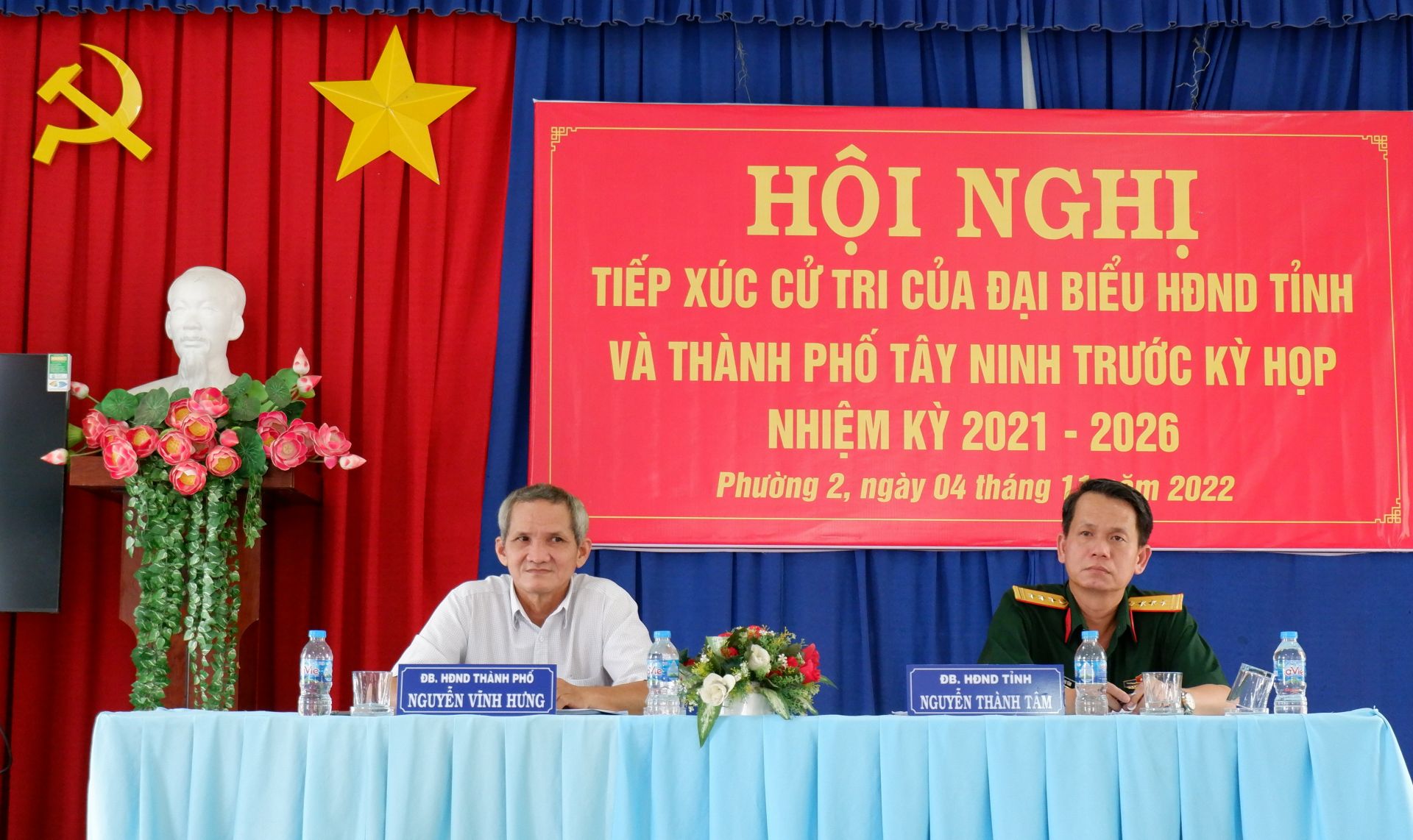 Đây là khẳng định của Phó Chủ tịch UBND thành phố Tây Ninh trong buổi tiếp xúc cử tri phường 2 vào chiều ngày 4.11. Dự buổi tiếp xúc có ông Nguyễn Thành Tâm- Phó Chỉ huy trưởng, Tham mưu trưởng Bộ Chỉ huy Quân sự tỉnh thuộc tổ đại biểu HĐND tỉnh và các đại biểu HĐND thành phố.