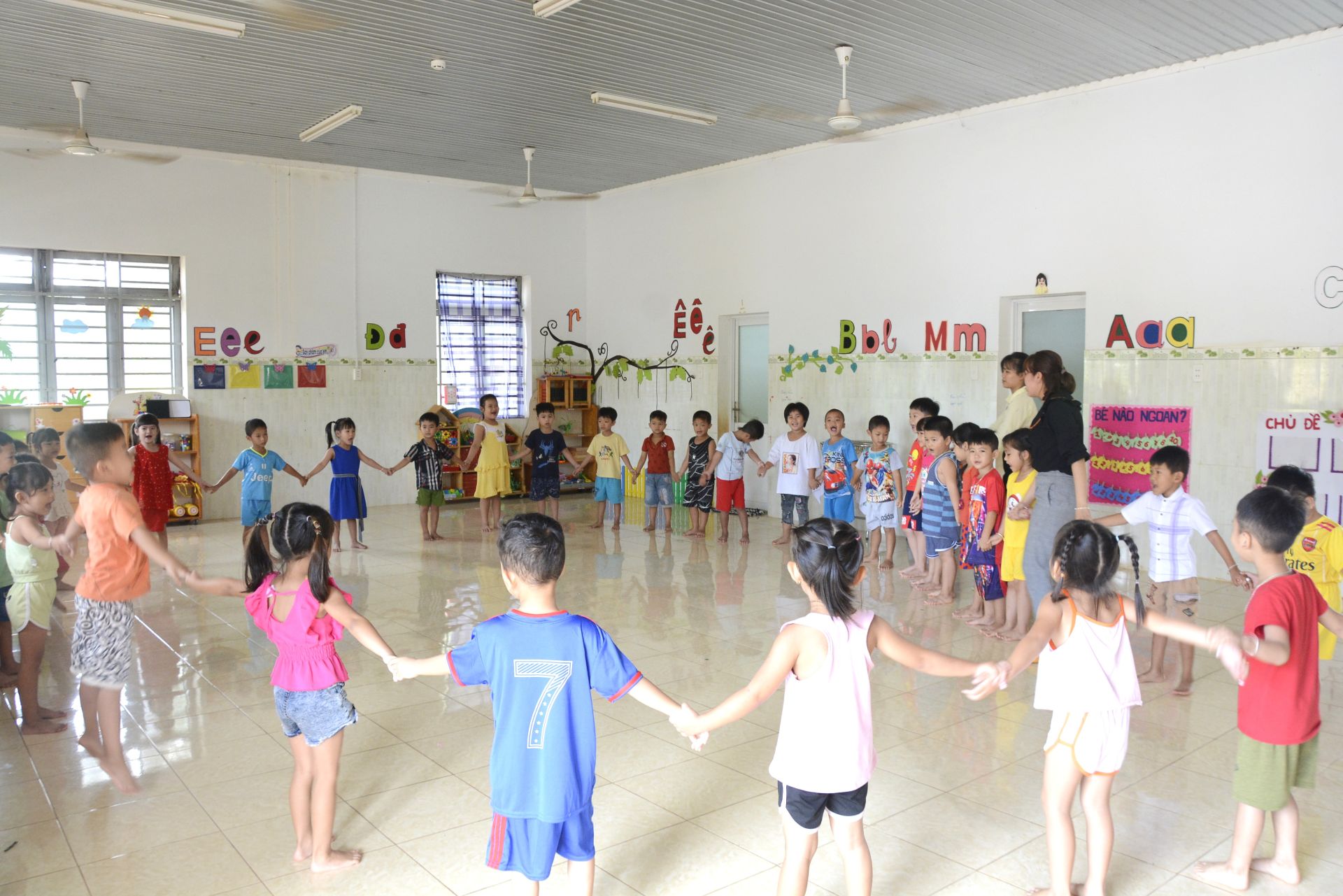 Cô và trò Trường mầm non Tân Khai (xã Tân Lập, huyện Tân Biên).
