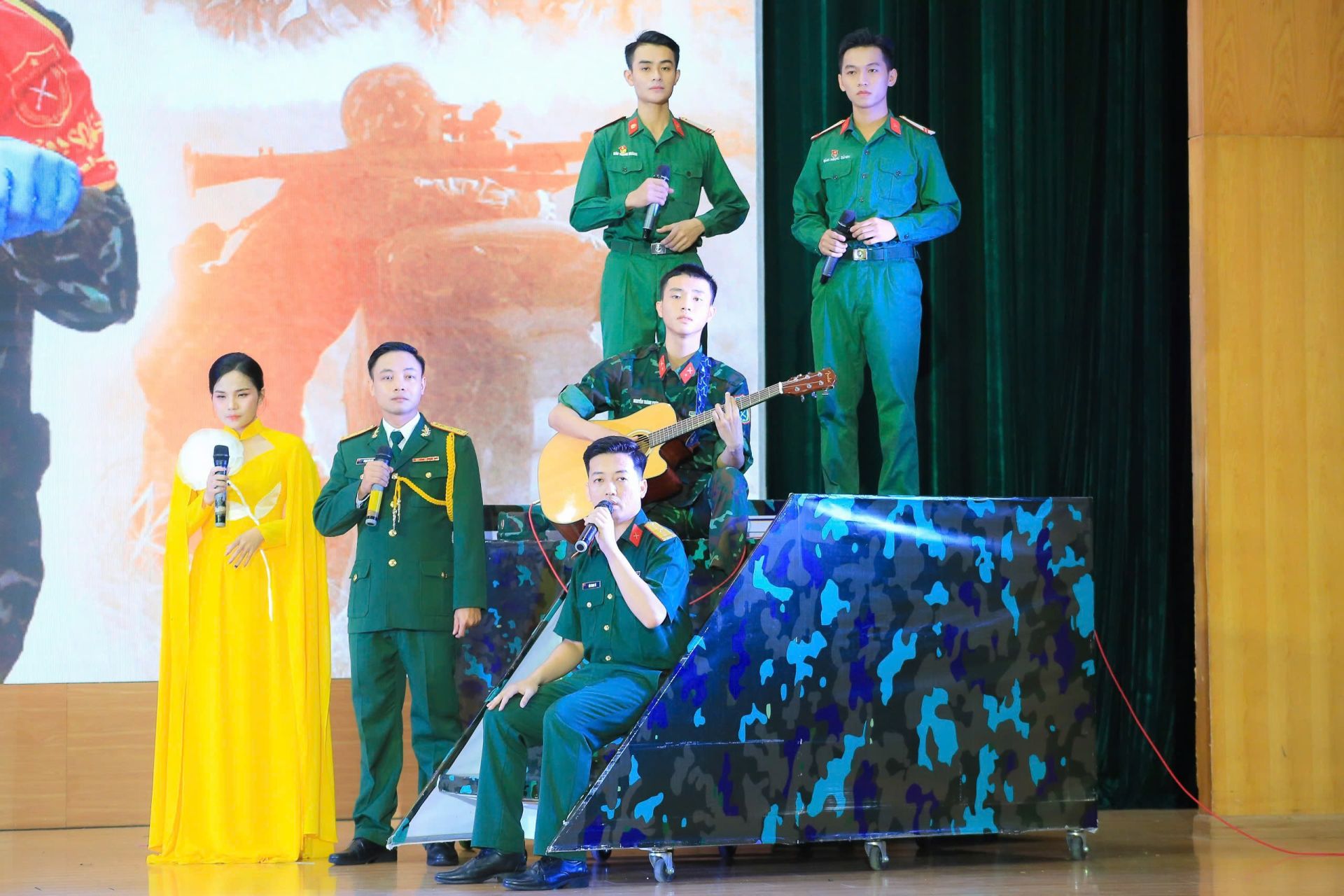 Thượng úy Phạm Văn Hòa (cầm micro) tham gia Hội thi Hát ru, hát dân ca năm 2024 do Quân khu tổ chức.
