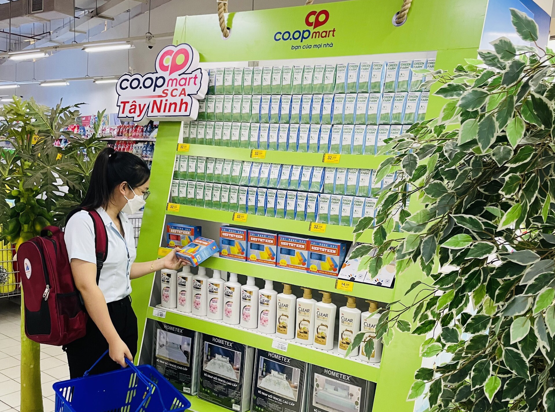 Khách hàng lựa chọn sản phẩm khuyến mãi "Gia đình Việt - Đại sứ xanh" tại siêu thị Co.opmart Tây Ninh (TP. Tây Ninh).