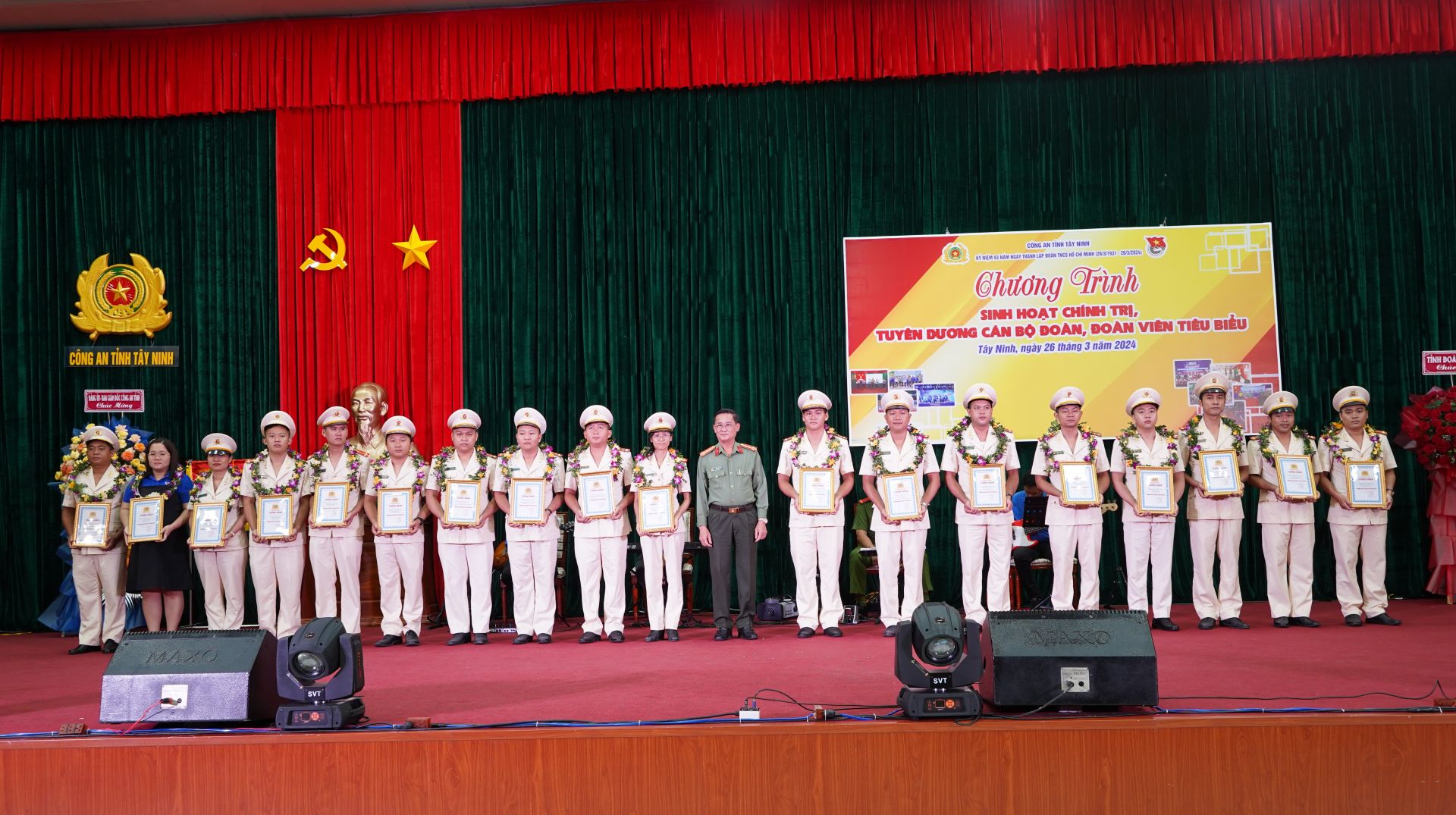 Ngày 26.3, Công an tỉnh Tây Ninh tổ chức chương trình sinh hoạt chính trị, tuyên dương cán bộ Đoàn, đoàn viên tiêu biểu nhân kỷ niệm 93 năm Ngày thành lập Đoàn Thanh niên Cộng sản Hồ Chí Minh (26.3.1931 - 26.3.2024).