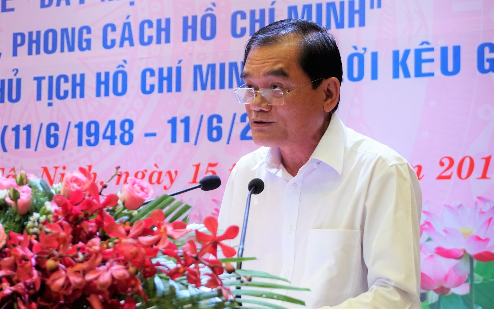 Chủ tịch UBND tỉnh Phạm Văn Tân ôn lại truyền thống 70 năm ngày Bác Hồ ra lời kêu gọi thi đua ái quốc.