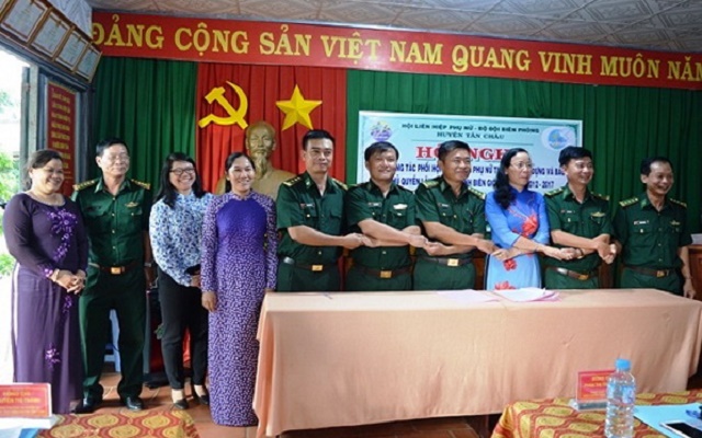 | Hội LHPN huyện Tân Châu ký kết phối hợp với các đơn vị bộ đội biên phòng đóng chân trên địa bàn huyện. |