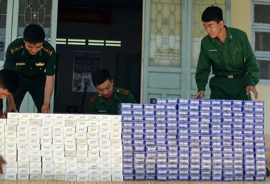 Cán bộ, chiến sĩ biên phòng tịch thu thuốc lá nhập lậu- Ảnh minh hoạ
