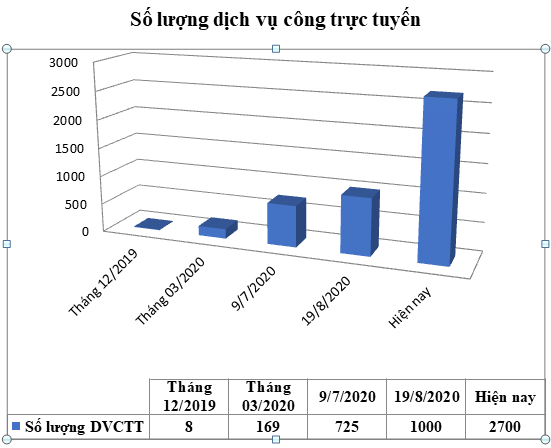 Cổng DVCQG chính thức khai trương ngày 9.12.2019. Từ 8 dịch vụ công được cung cấp từ thời điểm khai trương, đến ngày 30.12.2020 đã có 2.700 dịch vụ công được tích hợp, cung cấp trên tổng số gần 6.700 TTHC tại 4 cấp chính quyền (đạt tỷ lệ 39%, vượt chỉ tiêu Chính phủ giao 9%).