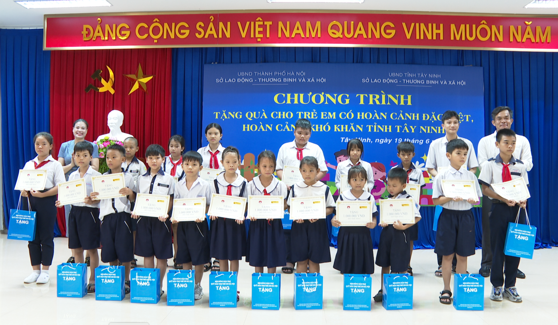 Chiều 19.6, Sở Lao động - Thương binh và Xã hội (LĐ-TB&XH) Hà Nội đến thăm, tặng quà cho trẻ em có hoàn cảnh đặc biệt, hoàn cảnh khó khăn trên địa bàn tỉnh Tây Ninh.