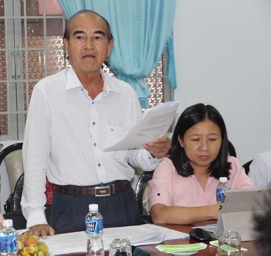 Ông Nguyễn Văn Nhiếm- Phó Chủ tịch UB.MTTQVN tỉnh, thành viên đoàn giám sát góp ý cho Đảng uỷ Sở LĐTB&XH trong công tác quản lý BHXH, BHYT, BHTN.