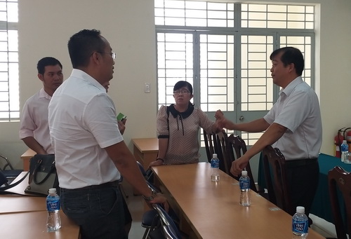 Ông Võ Đức Trong- Giám đốc Sở NN&PTNT trao đổi bên lề với các doanh nghiệp chế biến khoai mì.