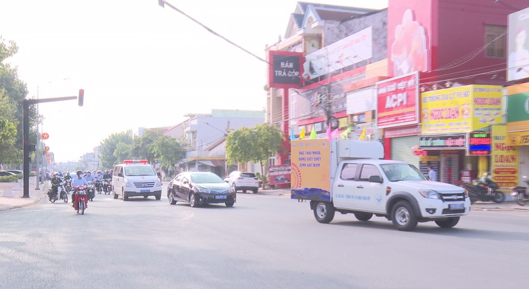 Đông đảo cán bộ, công chức, viên chức và lực lượng đoàn viên, thanh niên thị xã Hoà Thành diễu hành qua các tuyến đường chính trên địa bàn.