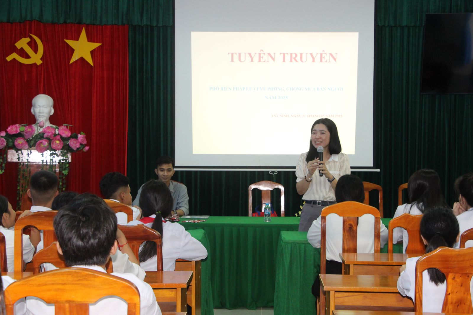 Ngày 21.5, Sở Y tế tổ chức tuyên truyền, phổ biến pháp luật về phòng, chống mua bán người năm 2025 tại trường Phổ thông Dân tộc nội trú tỉnh (thành phố Tây Ninh) và trường THPT Hoàng Văn Thụ (huyện Châu Thành).