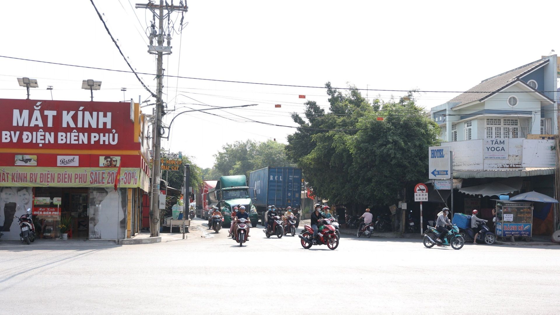 Chiều rộng mặt đường Nông trường nhỏ, hẹp, chỉ cần xe container kéo rơ-moóc lưu thông là đường trở nên chật chội.