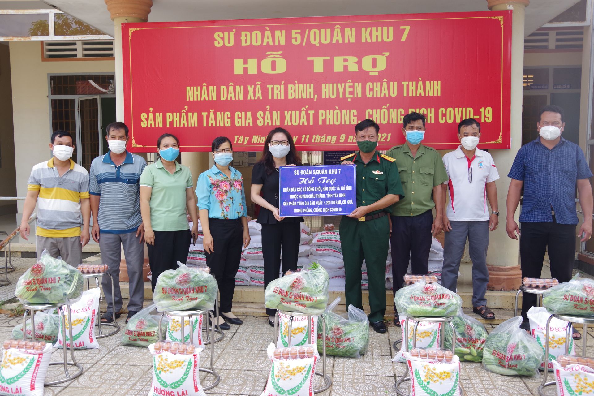 Sáng 11.9, tại các xã Đồng khỡi, Hảo Đước và Trí Bình, thuộc huyện Châu Thành, Sư đoàn 5 phối hợp cấp ủy, chính quyền địa phương tổ chức trao hỗ trợ sản phẩm tăng gia sản xuất của Sư đoàn gồm: 240 phần quà rau, củ, quả (mỗi phần 5kg) cho các hộ nghèo do ảnh hưởng dịch Covid-19.