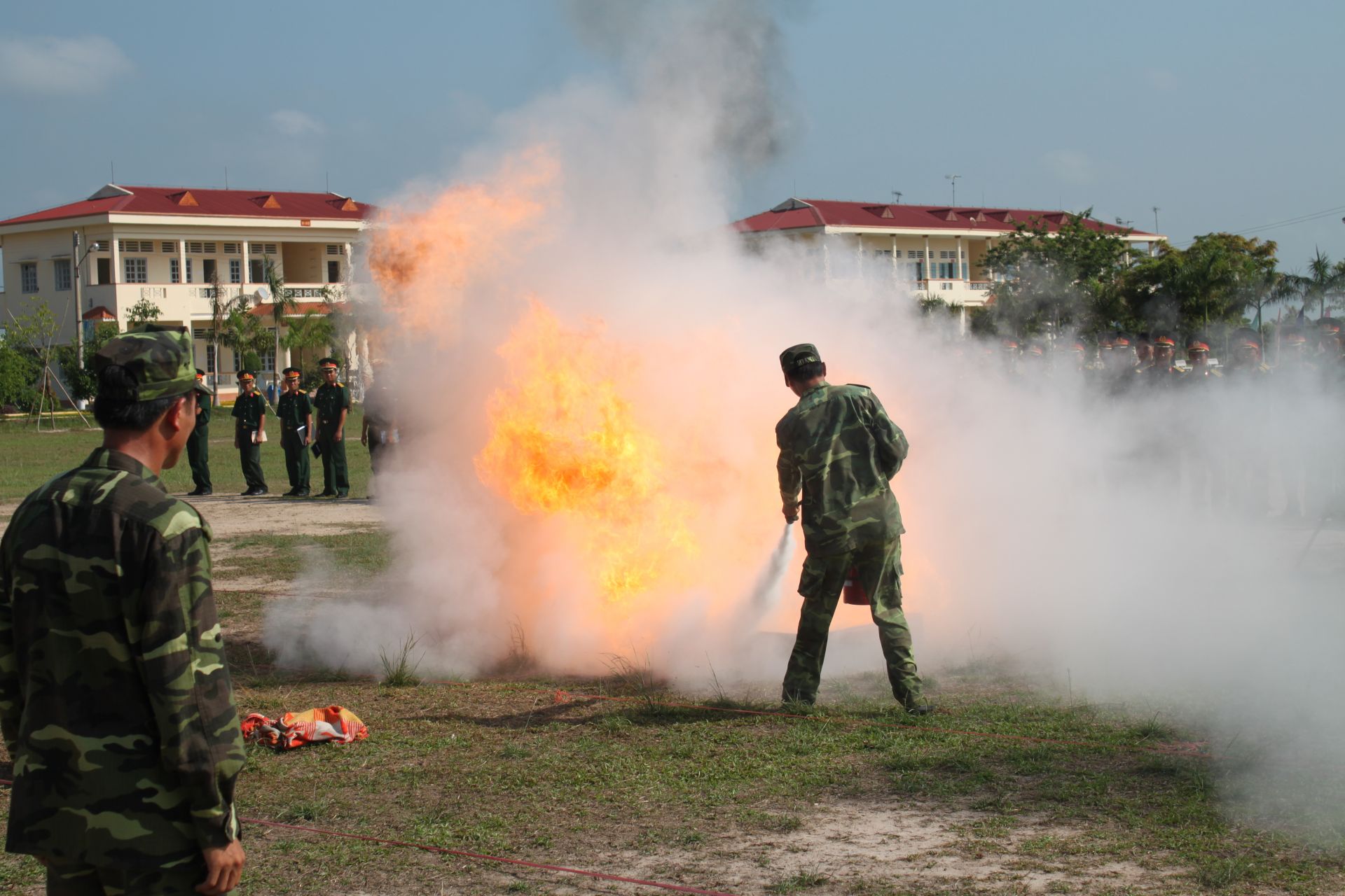 Cán bộ, chiến sĩ Sư đoàn 5 huấn luyện phòng chống cháy nổ.