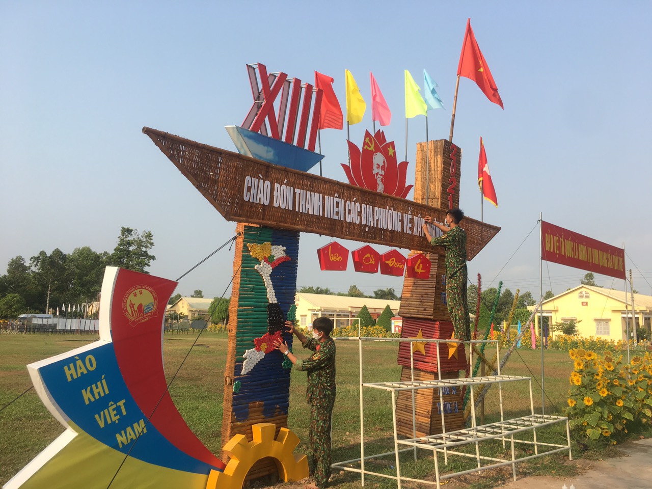 Xây dựng cổng chào thân thiện đón chiến sĩ mới.