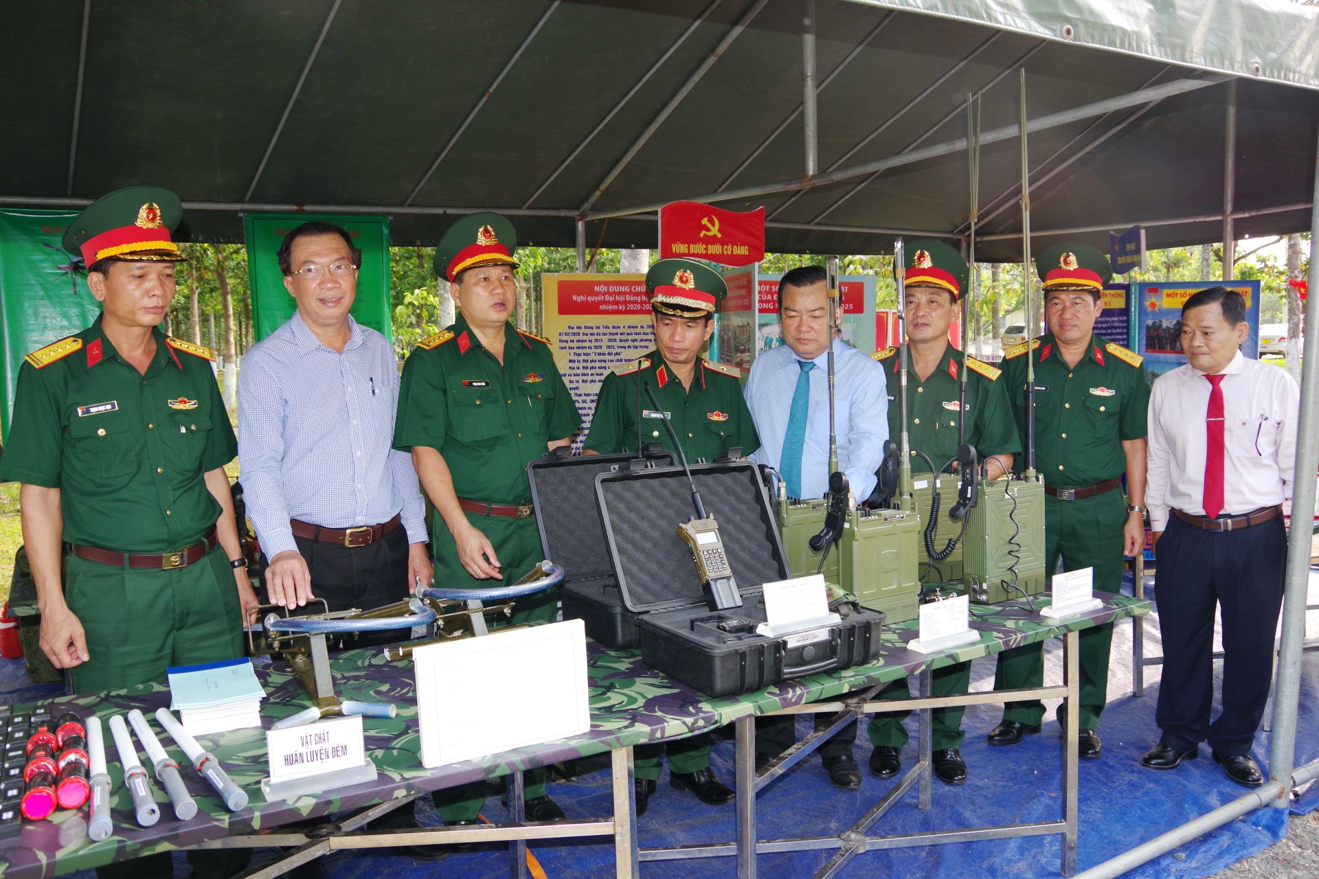 Thủ trưởng Bộ tư lệnh Quân khu 7 và lãnh đạo tỉnh Tây Ninh tham quan mô hình học cụ huấn luyện của Sư đoàn 5.