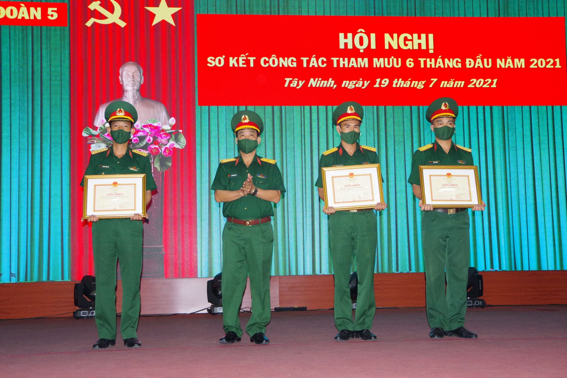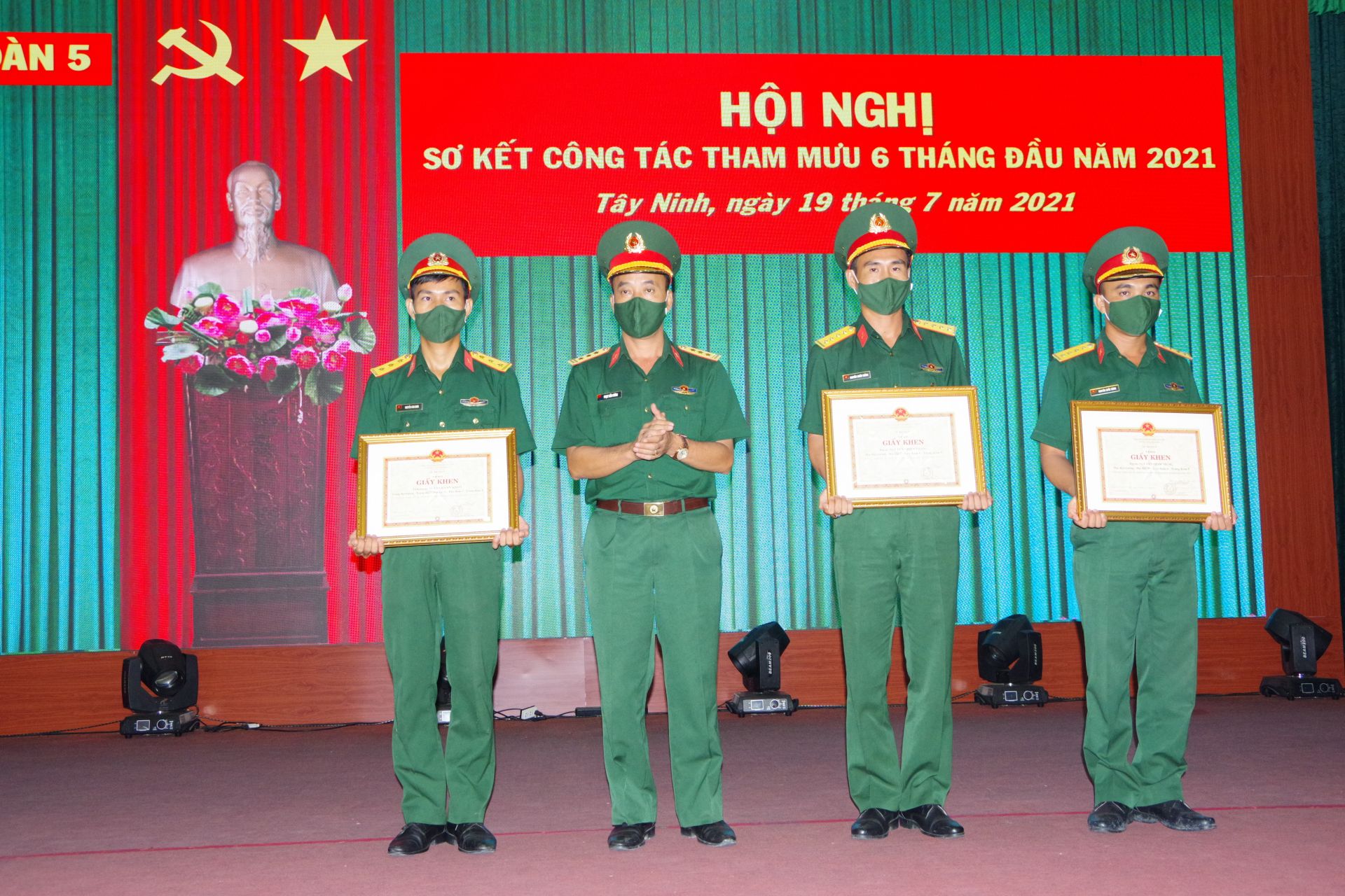 Thượng tá Phạm Tiến Cường- Phó Tham mưu trưởng Sư đoàn, trao thưởng cho các cá nhân có thành tích trong phục vụ Quân khu tập huấn quân sự năm 2021