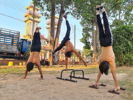 “Bộ môn này có hai kiểu tập là basic (căn bản) và skill. Basic chỉ đơn giản là những bài tập như hít xà, hít đất tăng cường sức khoẻ, sức dẻo dai. Tập skill khó, đòi hỏi cả một chút mạo hiểm trong đó”- Phạm Quốc Bảo, chàng trai có làn da đen nhẻm, rắn rỏi chia sẻ.
