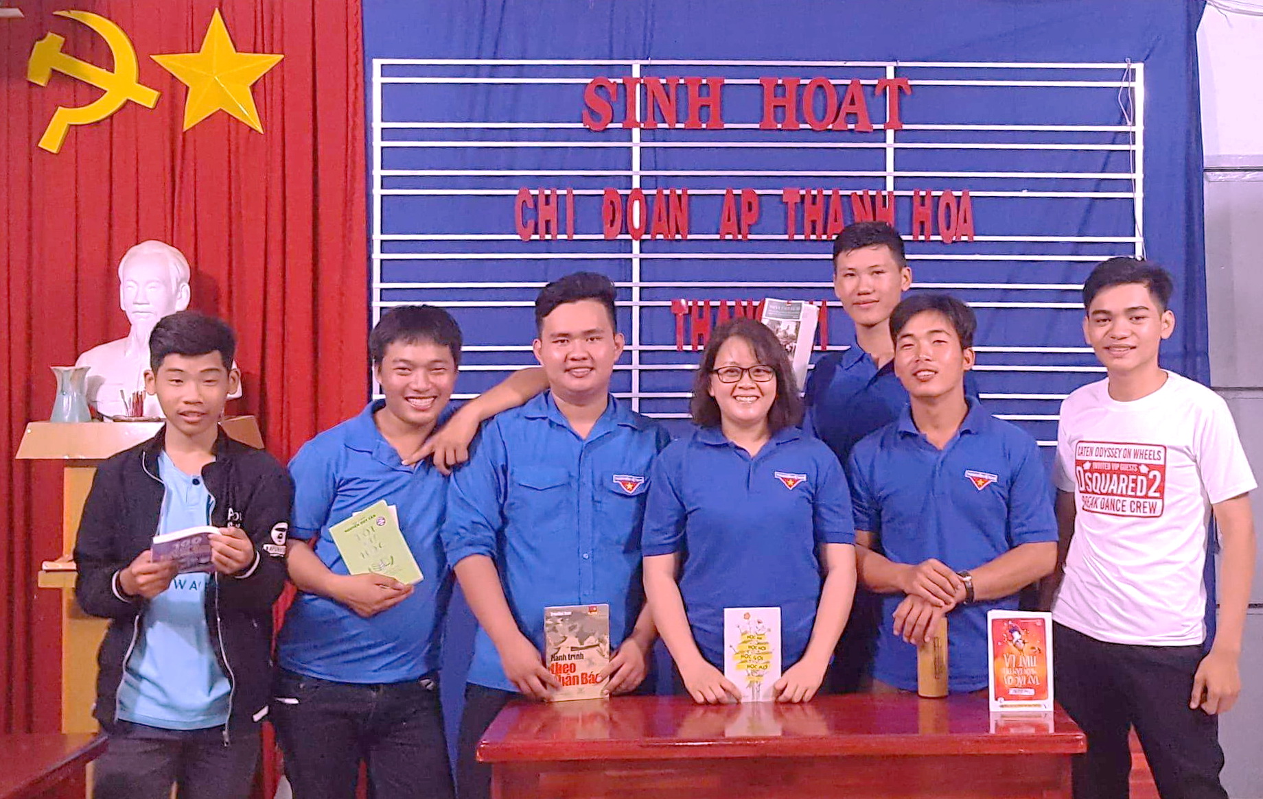 Chị Hằng (giữa) cùng các đoàn viên trong Chi đoàn Thạnh Hoà.