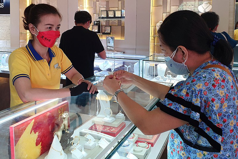 Giá vàng dự báo sẽ còn biến động khó lường do khủng hoảng tại Ukraine. Trong ảnh: Người dân lựa vàng tại một cửa hàng ở TP.HCM. Ảnh: THÙY LINH
