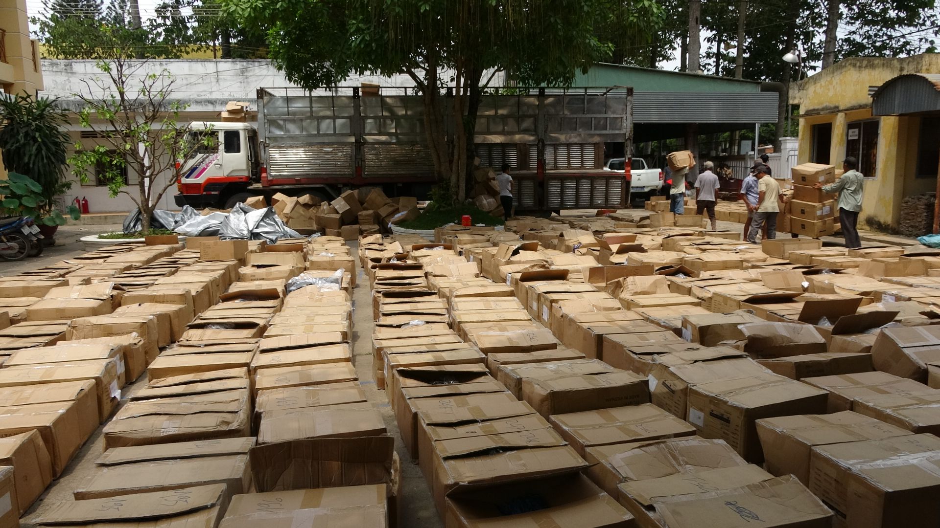 Sau khi xuất trình giấy tờ xe cho cơ quan Công an, tài xế đã bỏ chạy, để lại chiếc ô tô, trên xe chất đầy hàng hóa. Qua kiểm tra, Công an huyện Châu Thành phát hiện trên xe tải có 941 thùng carton, bên trong chứa quần áo không có nguồn gốc, xuất xứ.