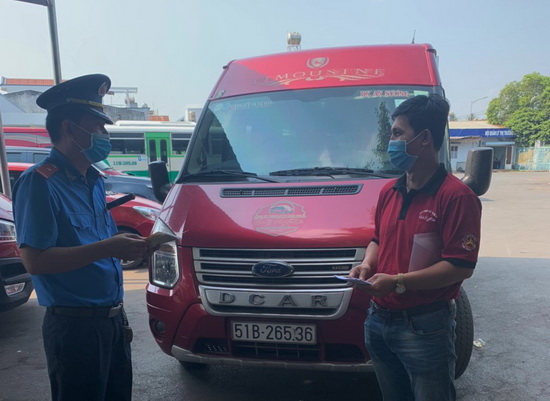 Thanh tra giao thông kiểm tra hoạt động vận tải hành khách các chuyến xe khách trước khi xuất bến- Ảnh minh họa