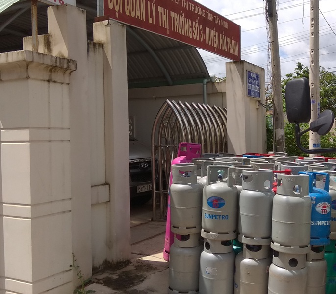 Vỏ bình gas, bình gas mang nhãn hiệu Công ty Thái Dương bị Đội quản lý thị trường số 3 huyện Hòa Thành tạm giữ. |