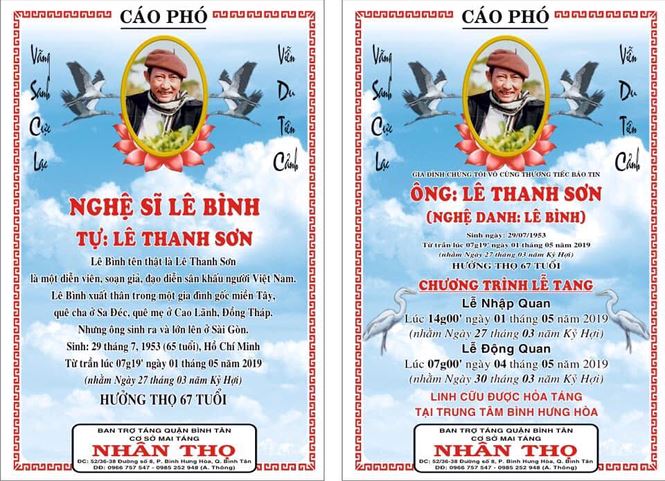 Từ hôm 26/4, nam nghệ sĩ “Đất Phương Nam” đã có dấu hiệu nguy kịch và được chuyển đến khoa Hồi sức tích cực của BV để theo dõi. Sau hơn 1 năm chống chọi với ung thư, nghệ sĩ Lê Bình đã qua đời vào khoảng 7h 20 phút sáng nay.