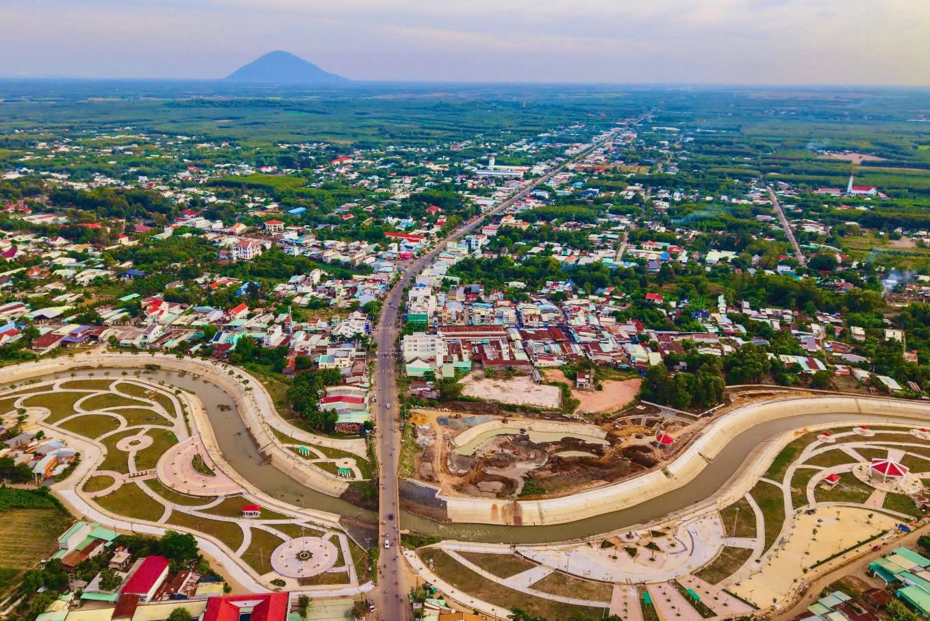 Toàn cảnh huyện Tân Biên nhìn từ trên cao.