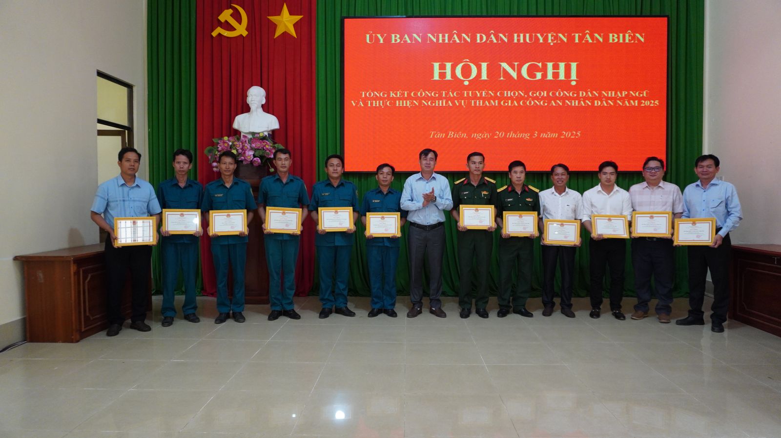 Sáng 20.3, Hội đồng nghĩa vụ quân sự (NVQS) huyện Tân Biên tổ chức hội nghị tổng kết công tác tuyển chọn, gọi công dân nhập ngũ và thực hiện nghĩa vụ tham gia Công an Nhân dân năm 2025.