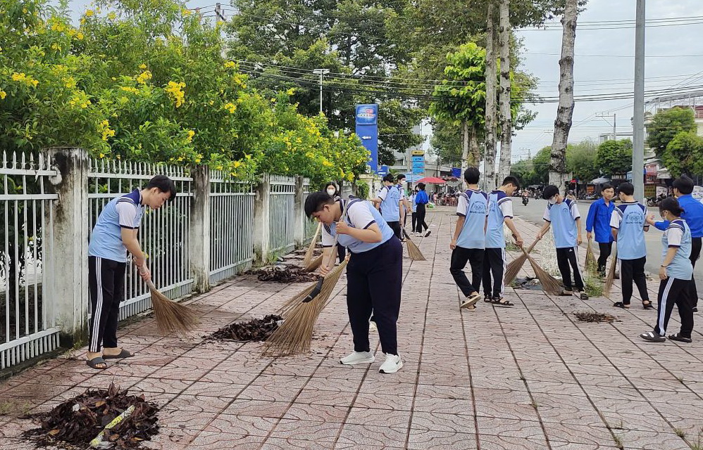 Đoàn viên thanh niên ra quân quét dọn, vệ sinh trên các tuyến đường.