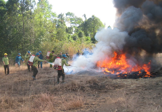 Tình huống giả định, vào lúc 14 giờ 15 phút ngày 31.12.2019, một nhóm người dân vào rừng bắt ong lấy mật, do dùng lửa đốt ong đã làm cháy lan ra khu vực trảng cỏ thuộc khoảnh 12 và khoảnh 4, tiểu khu 19 VQG Lò Gò - Xa Mát.