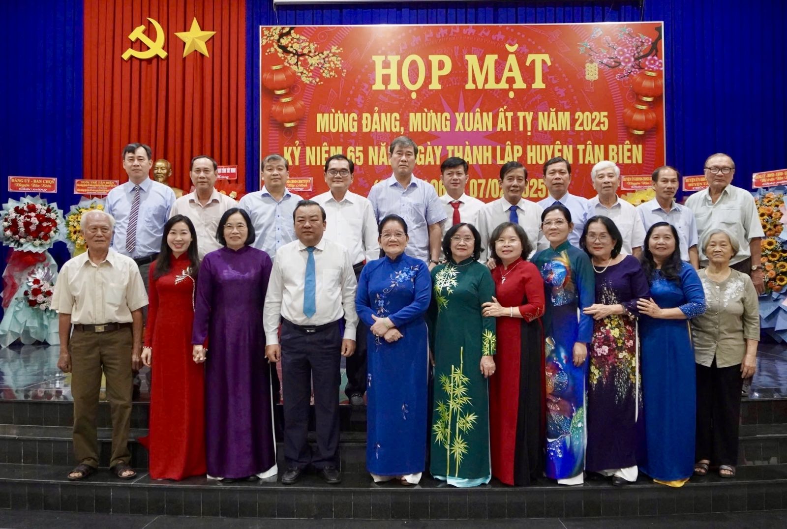 Chiều 7.2, huyện Tân Biên long trọng tổ chức họp mặt mừng Đảng, mừng Xuân Ất Tỵ và kỷ niệm 65 năm ngày thành lập huyện (7.2.1960–7.2.2025).