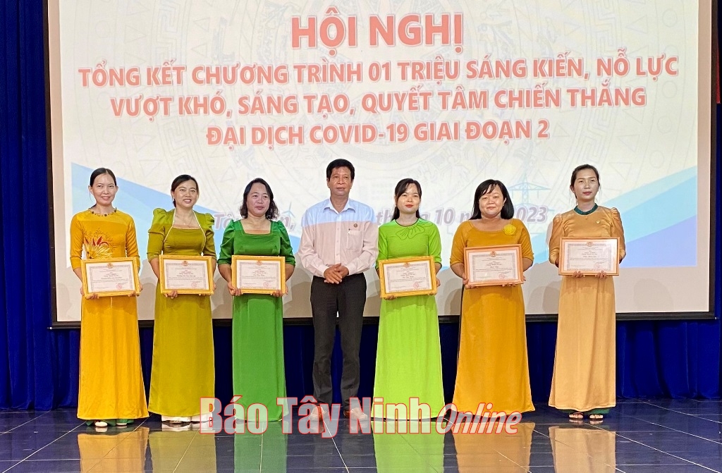 Dịp này, LĐLĐ huyện khen thưởng cho 10 cá nhân có thành tích xuất sắc trong thực hiện Chỉ thị 05 về “Đẩy mạnh học tập và làm theo tư tưởng, đạo đức, Hồ Chí Minh” trong công nhân, viên chức lao động và 6 tập thể đạt thành tích trong chương trình 1 triệu sáng kiến, nỗ lực vượt khó, sáng tạo, quyết tâm chiến thắng đại dịch Covid-19 giai đoạn 2.